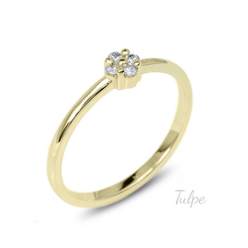 Elegáns fehér/sárga/rozé arany női gyűrű. A virág alakú fejrészbe 4 db. csillogó kő került, gondos kézi munkával befoglalva.