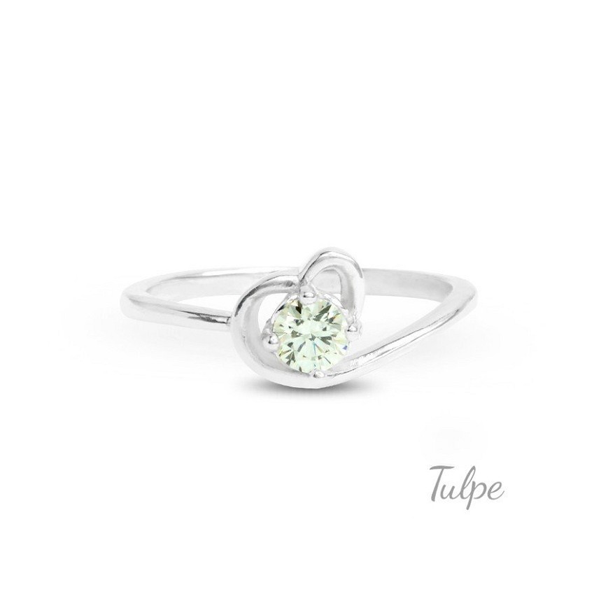 Modern vonalú szív formájú kerek kővel foglalt gyűrű.
