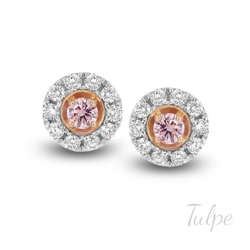Elegáns arany női fülbevaló,biztonságos stekkeres zárral. A virág alakú fejrészbe 22 db. csillogó gyémánt és 2 db. Pink zafír lett befoglalva.