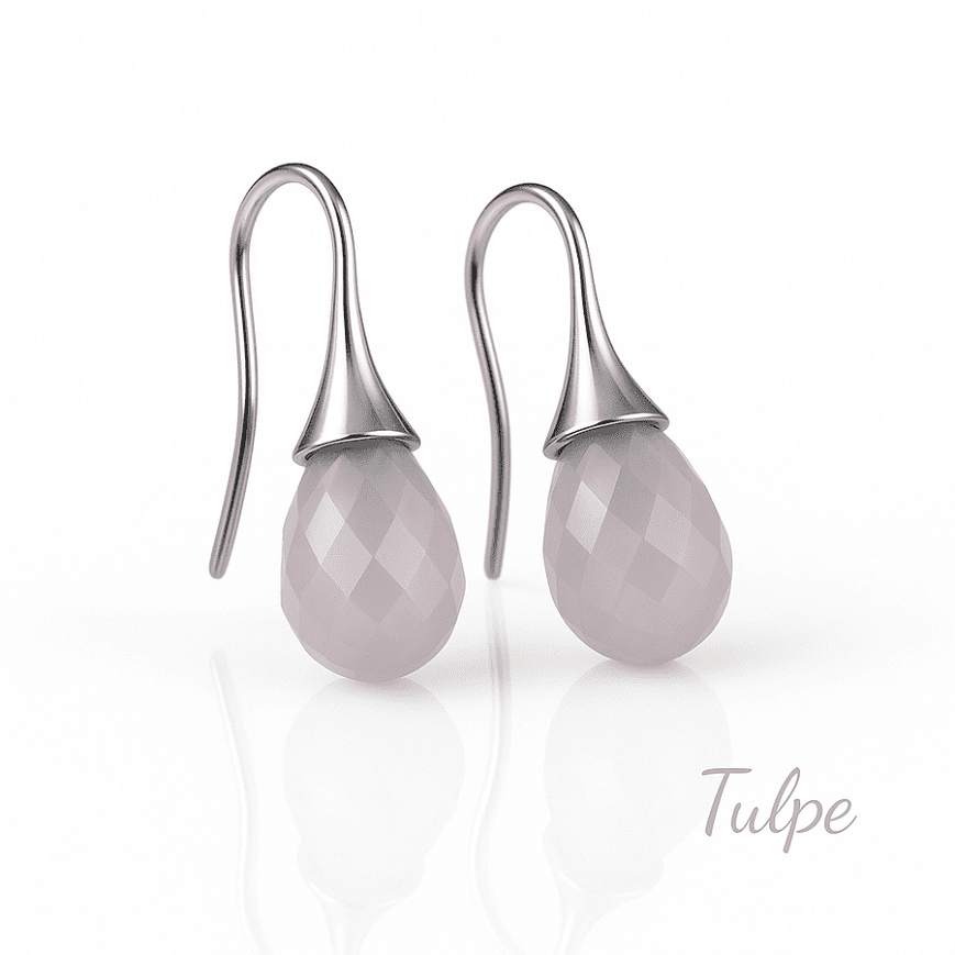 Egyszerű stiftes, csepp alaku briolett csiszolású rózsakvarc