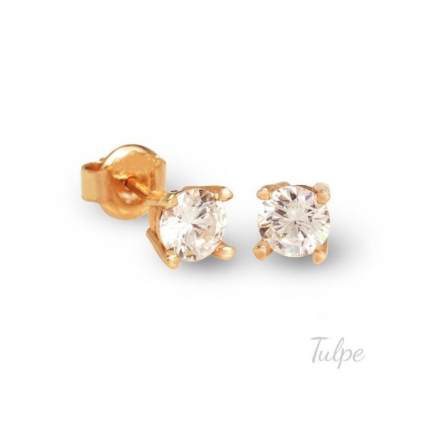 Egyszerű stiftes, stekkeres karmos jellegű fülbevaló, 4.50 mm-es csillogó cirkóniával a mindennapokra.