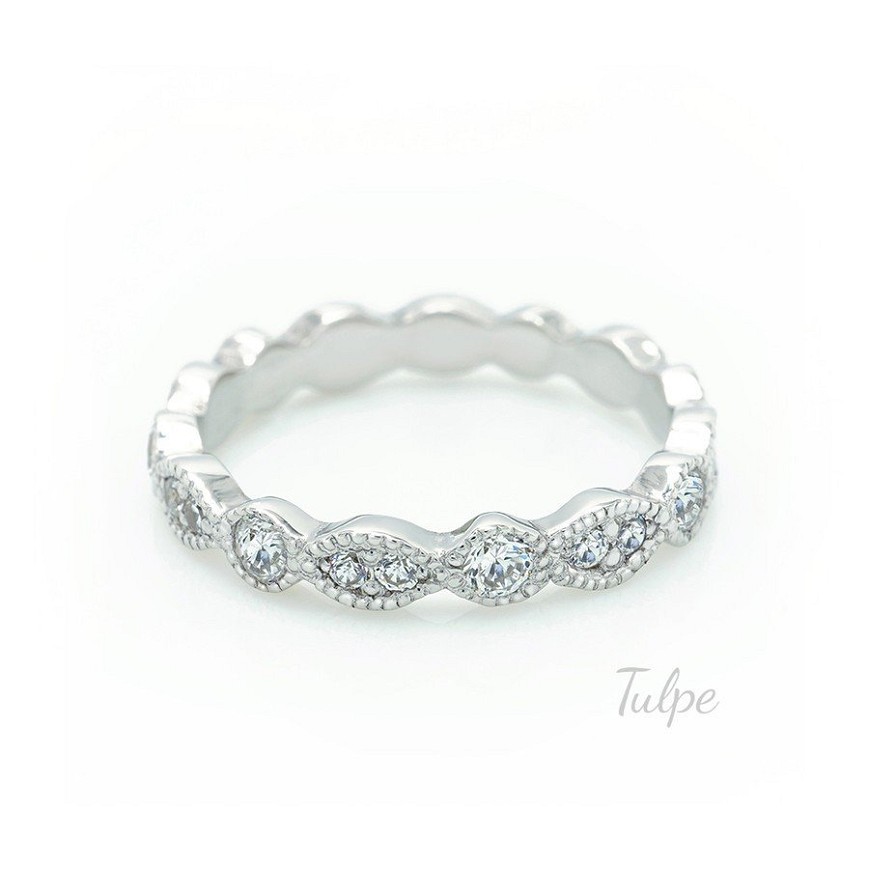 Formák varázsa körbevezetve a gyűrűn, kisebb és nagyobb kövek váltakozásával, a gyűrű körbe lett foglalva.Viselhető akár karikagyűrűként is.