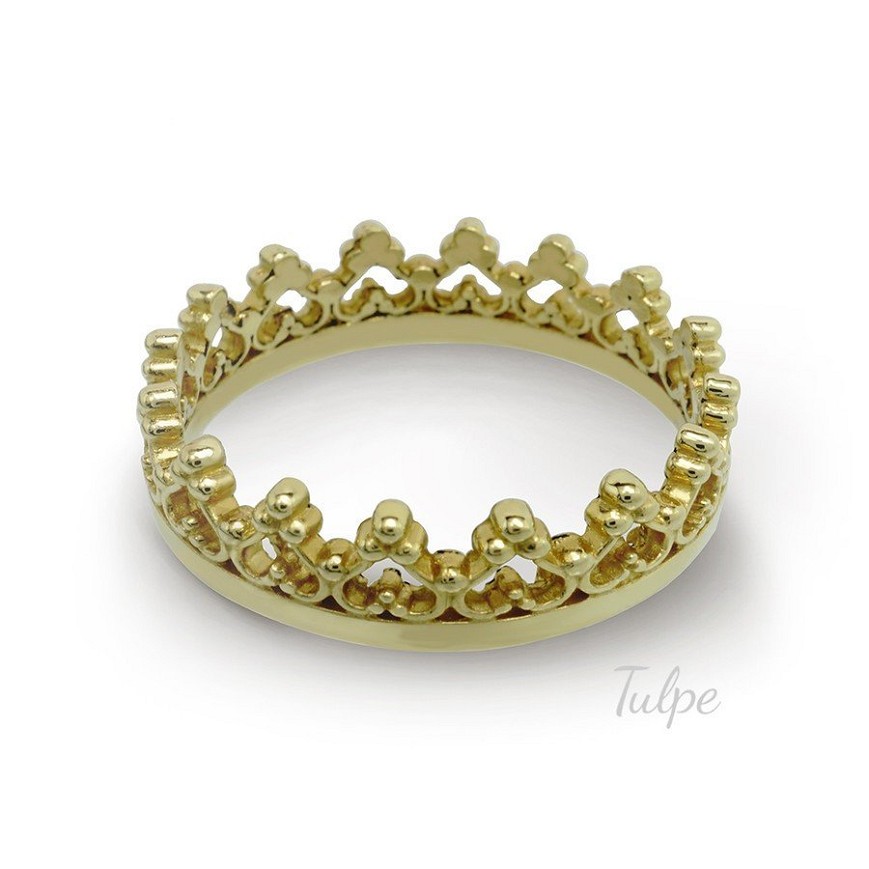 Filigrán, áttört koronát formázó gyűrű. Több színben elérhető.