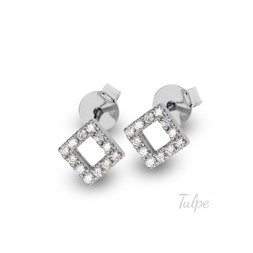Elegáns arany női fülbevaló,biztonságos stekkeres zárral. A szögletes alakú fejrészbe 24 db. csillogó kő került, gondos kézi munkával befoglalva.