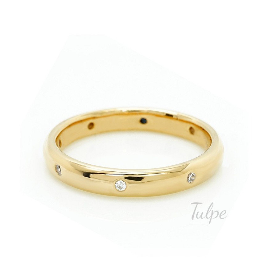 Féldomború, klasszikus sorköves női gyűrű. Kitűnő választás karikagyűrűként is.