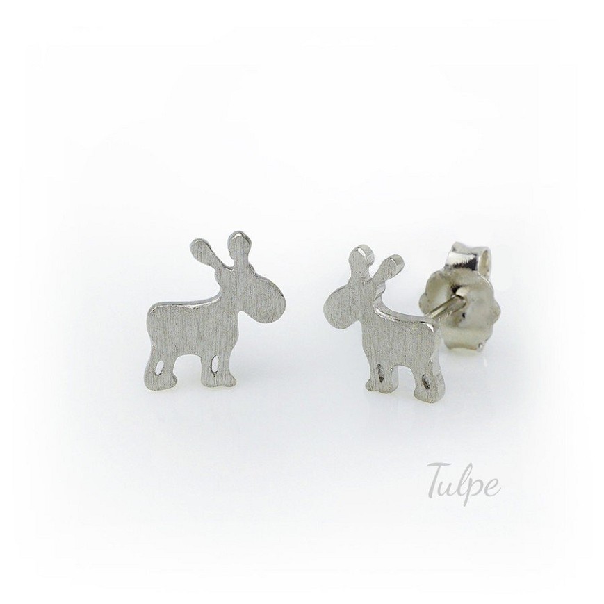 Rénszarvas fülbevaló, fehér aranyból, stekkeres zárral szerelve, kedves ajándék minden korosztálynak.